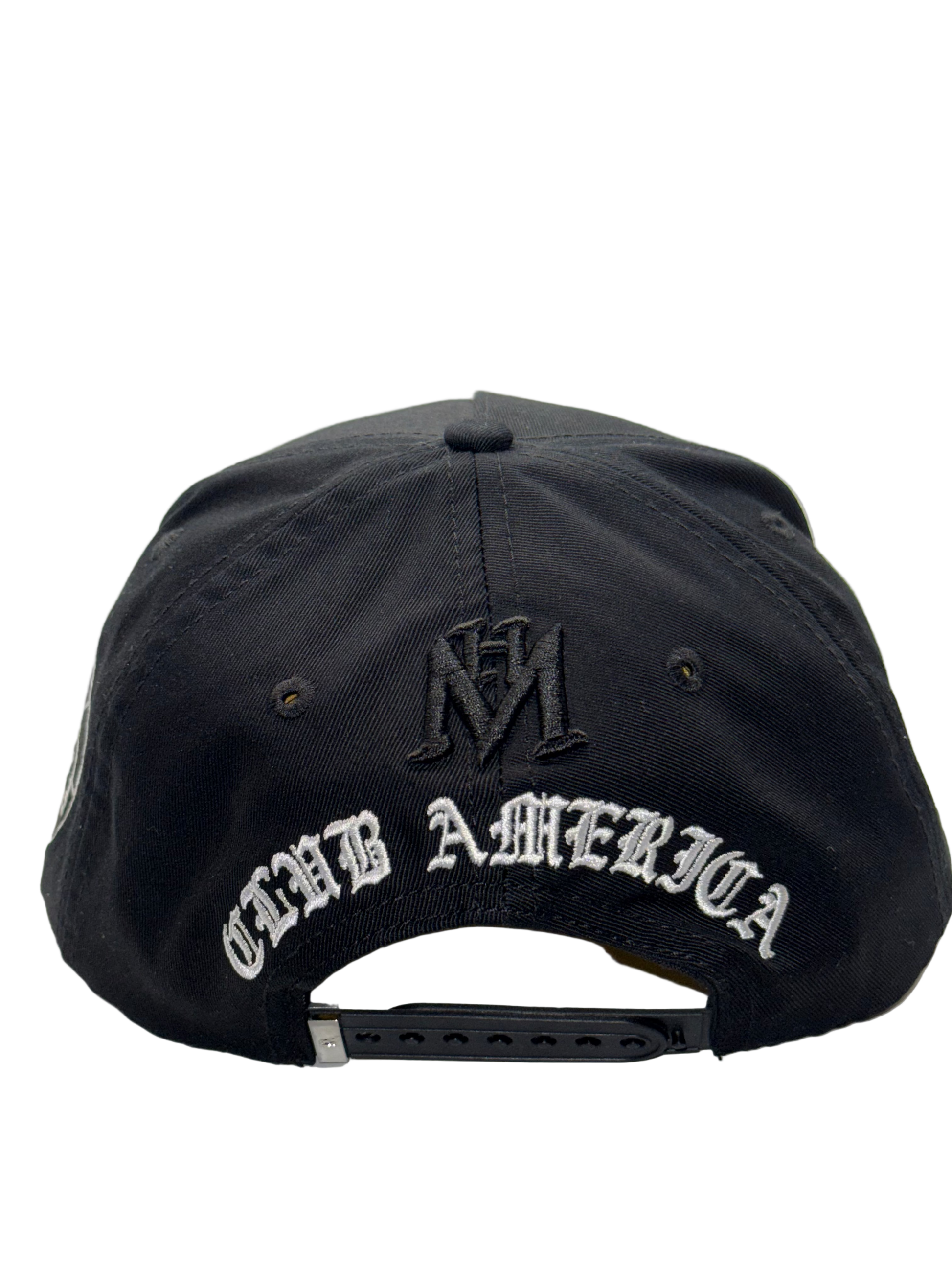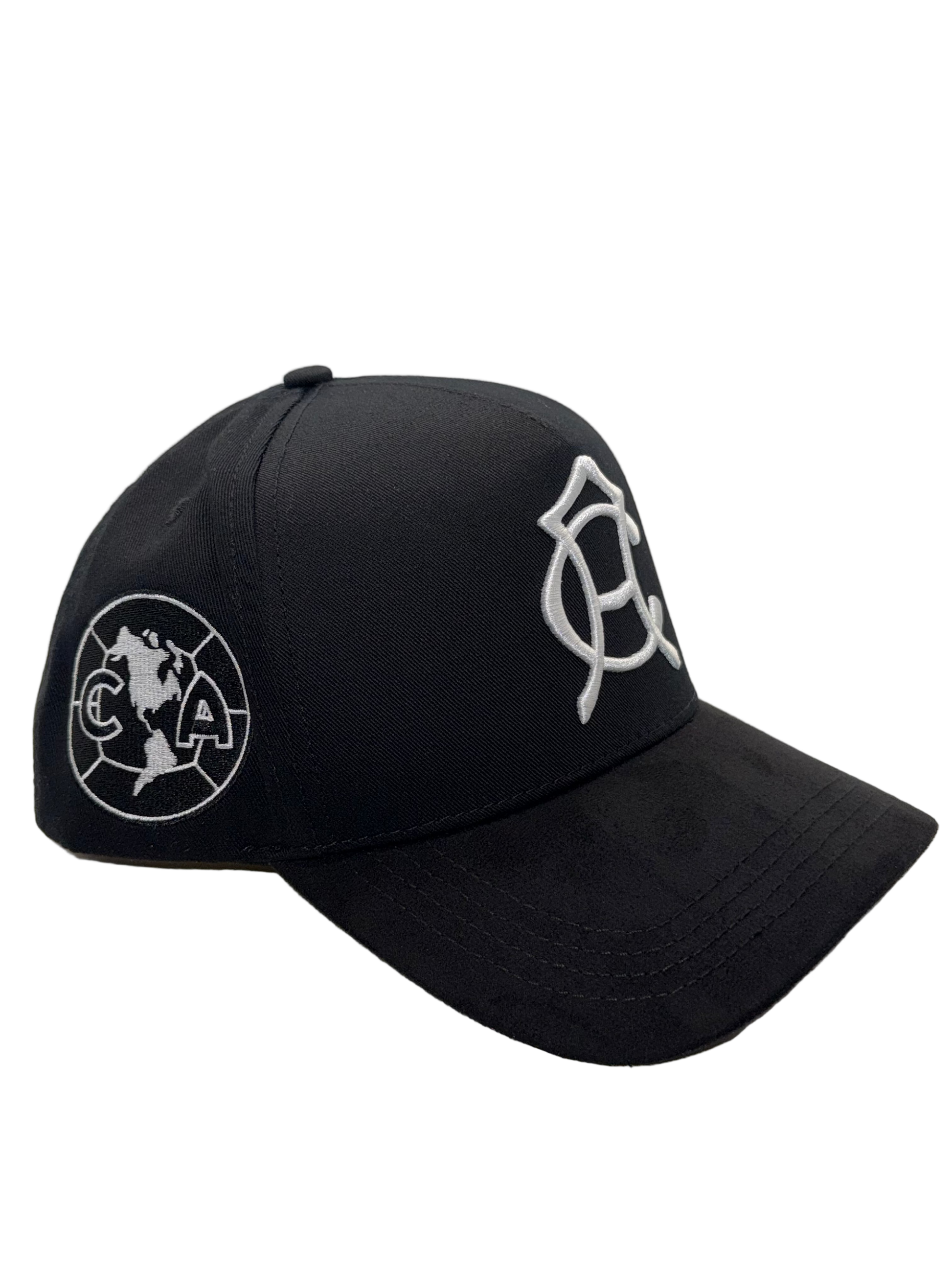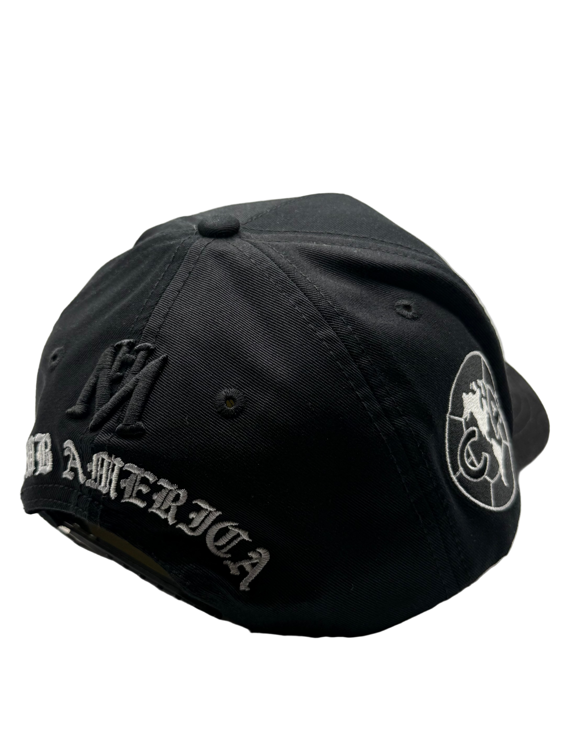 Club América El Más Grande celebrates the storied legacy of one of Mexico's most iconic teams. This premium cap features the vintage Club América crest alongside the contemporary logo in striking black and white on both sides, complemented by an exclusive Club América emblem on the back. Crafted from quality cotton with a suede brim for enhanced durability and comfort, the interior showcases luxurious satin lining in gold—a refined detail that elevates the overall aesthetic. Perfect for devoted supporters who appreciate both heritage and contemporary style.